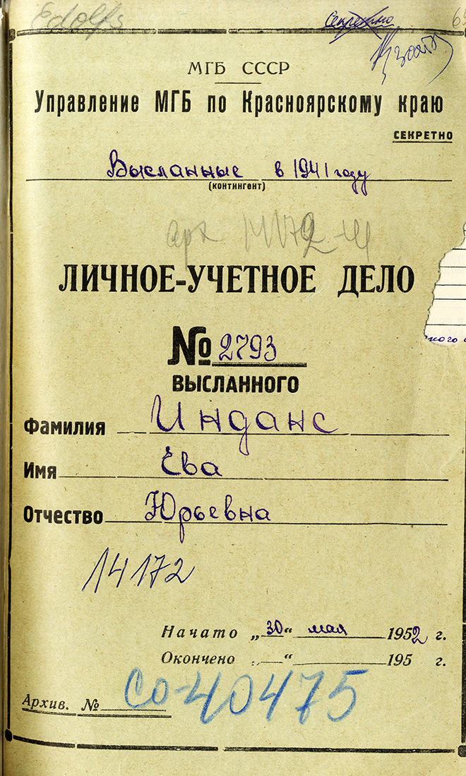 Ievu Indāni un meitu Ēriku aizsūtīja uz Krasnojarskas apgabalu, strādāja taigā, vāca sveķus.