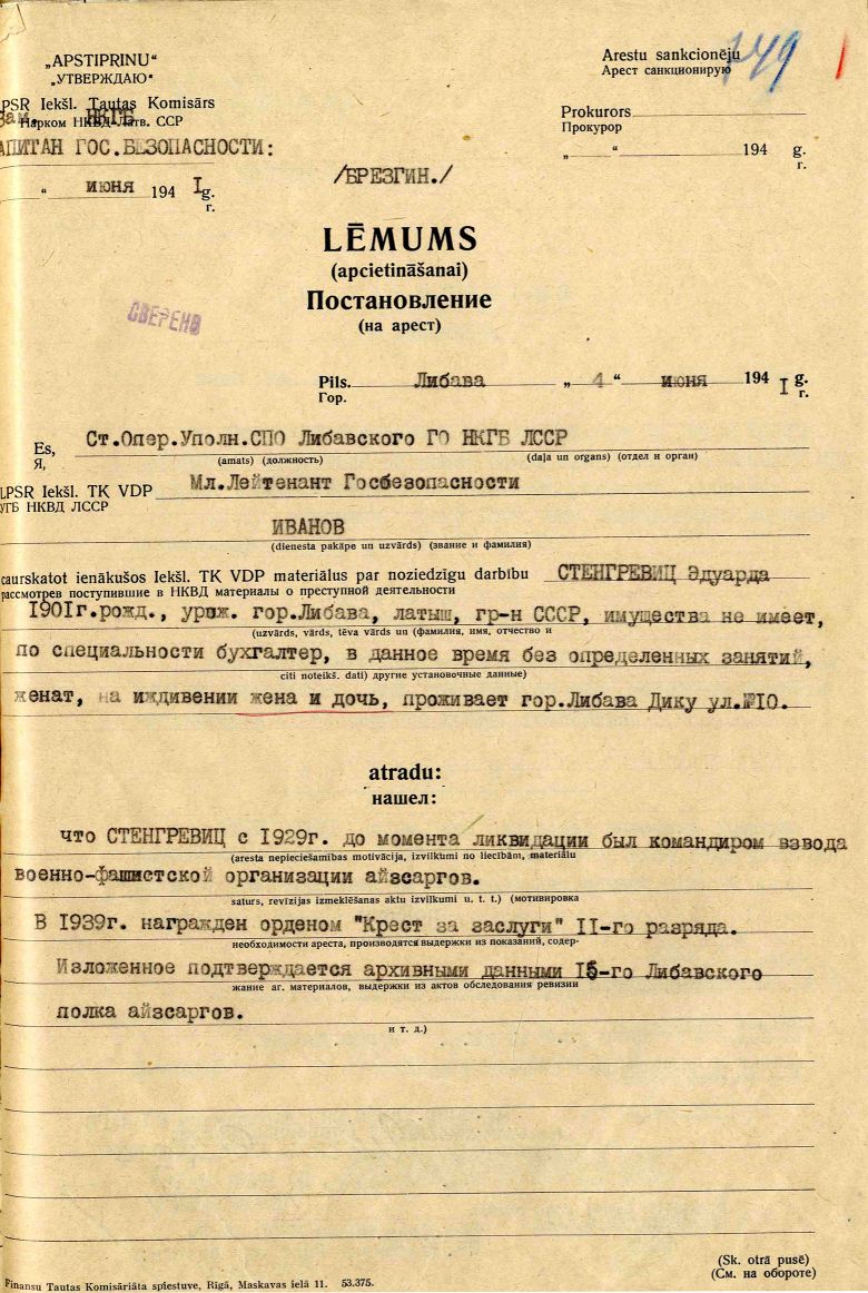 Tēvs Stengrevics Eduards Miķeļa d., dz. 1901, dzīvoja Liepājā, Dīķu iela 10-2, arestēts 14.06.41., ieslodzīts Kirovas apgabala Vjatlagā, pēc tam nometinājumā, atbrīvots 25.04.56. Lieta Nr. 15048.