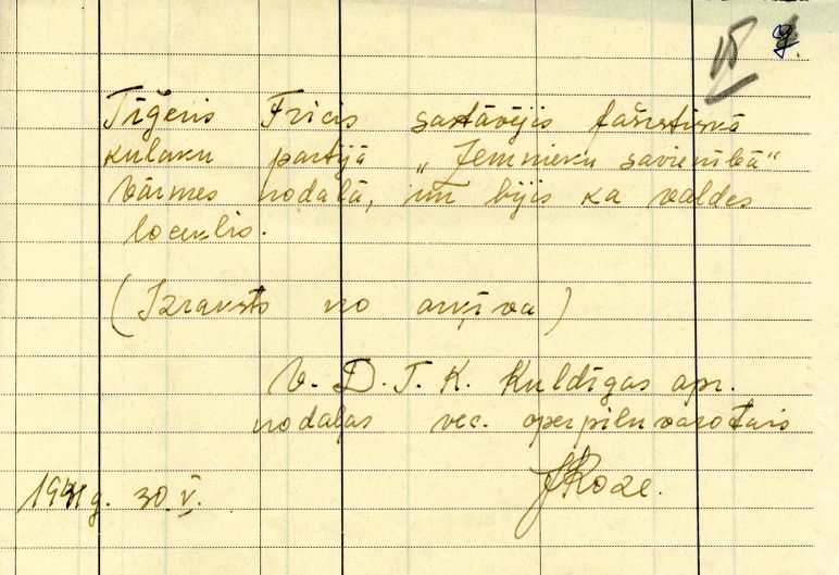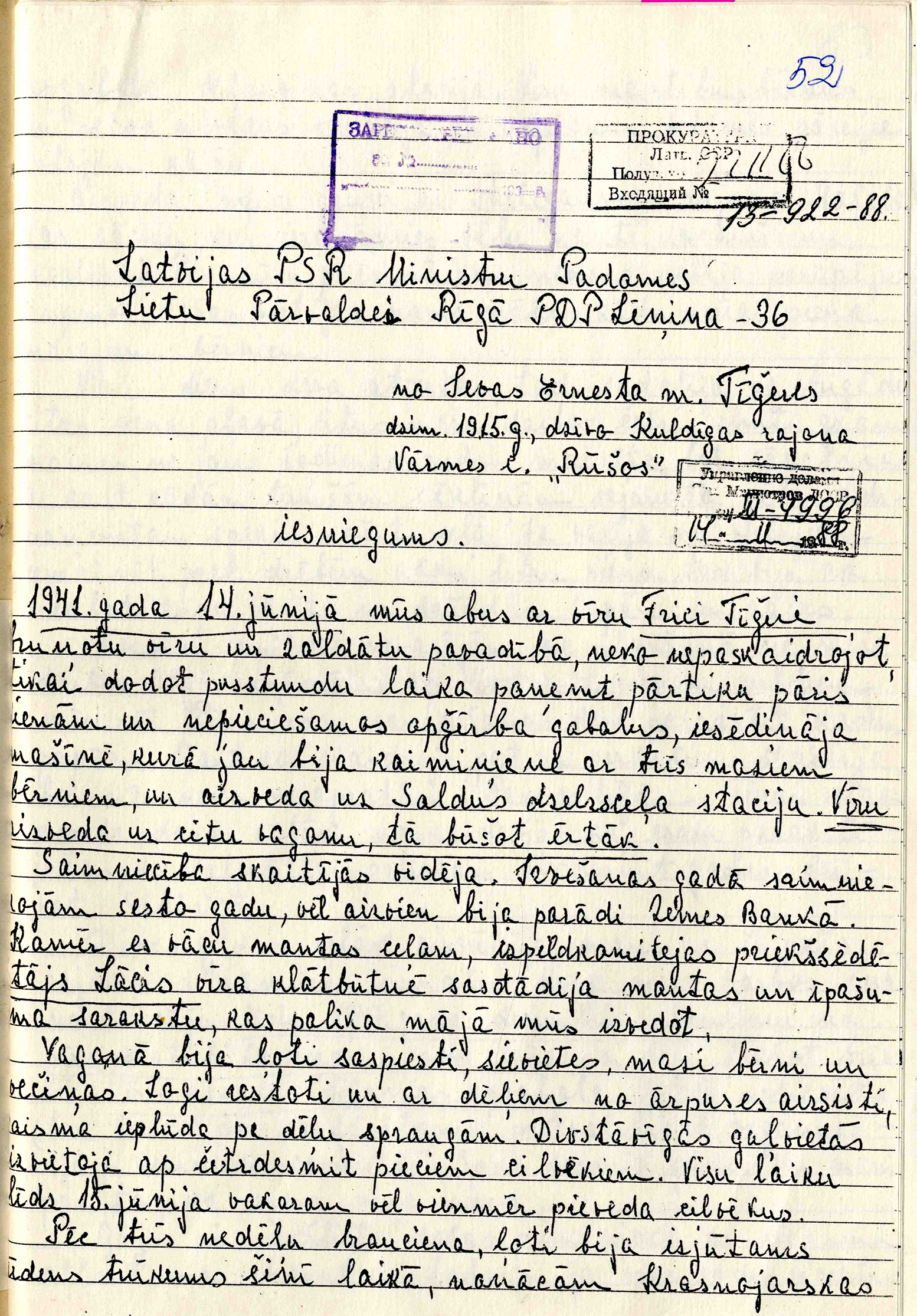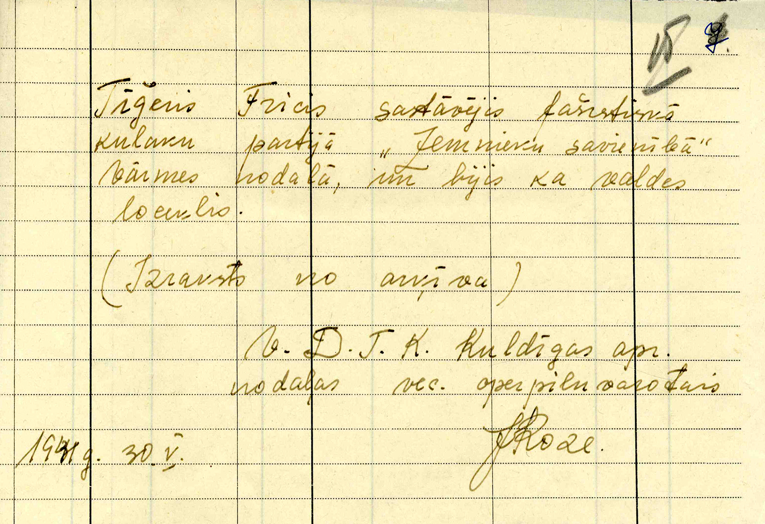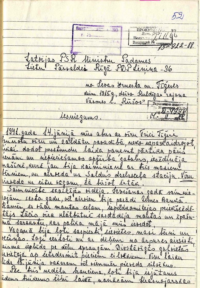 Tīģere Ieva Ernesta m., dz. 1915, dzīvoja Kuldīgas apriņķa Vārmes pagasta Rūšos, izsūtīta 14.06.1941. uz Krasnojarskas novada Partizanskas rajonu, atbrīvota 15.01.57 lieta Nr. 16388.