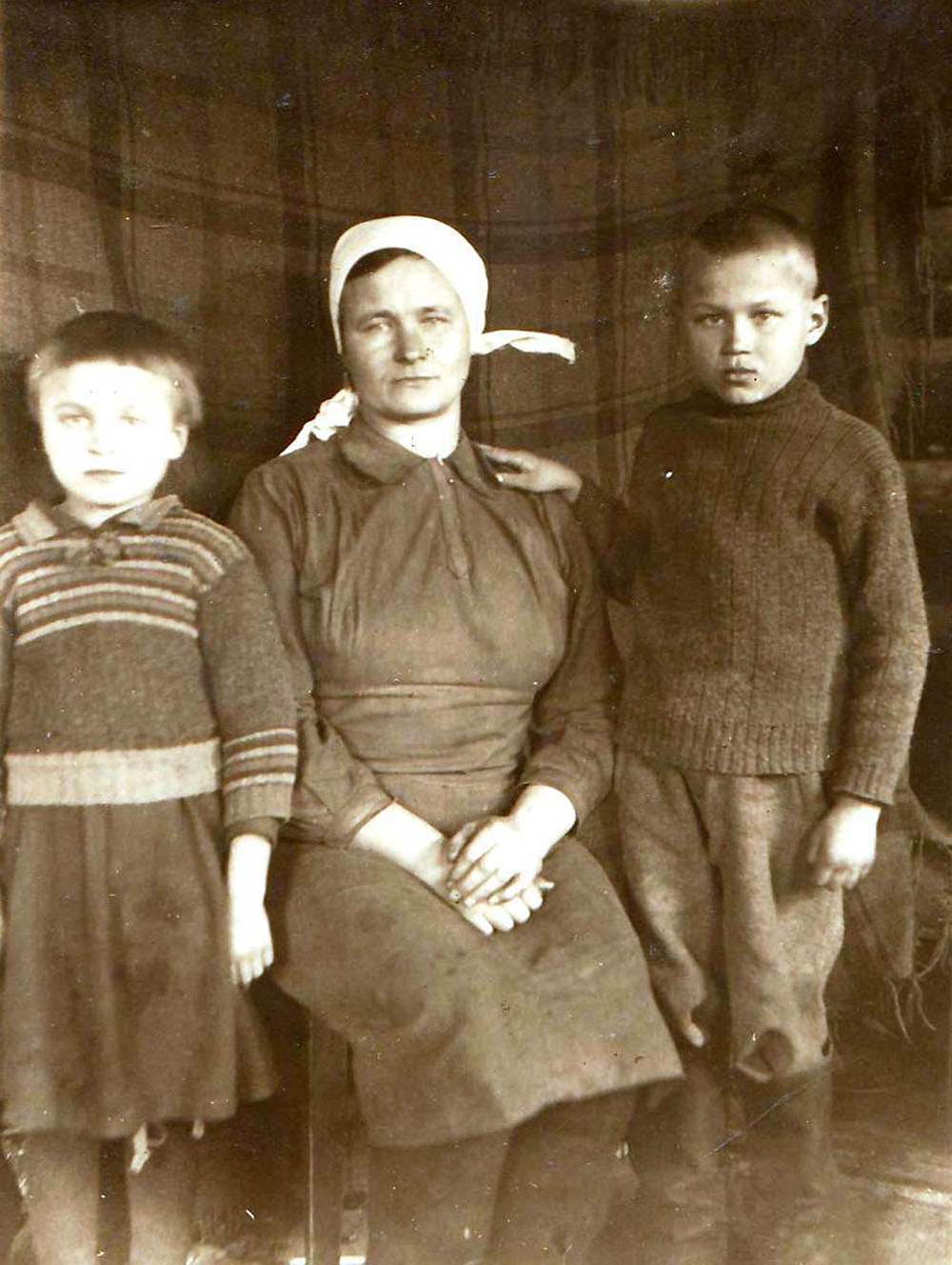 Strādājot caurvējā, aukstumā, bez kārtīga apģērba, pusbadā, mamma smagi saslima un nonāca slimnīcā. Mani ar māsiņu, mātes slimības laikā, ievietoja bērnu namā. Mamma izveseļojās, dabūja darbu kara hospitālī. Bērni bija pazuduši, tomēr mamma mūs atrada bērnu namā. Es biju kļuvis par Ivanu, māsa pa Aņu. Mammai negribēja bērnu nama vadība mūs atdot, jo māsa mammu neatpazina. Māte bija ļoti, ļoti izdilusi, knapi varēja pazīt. Tomēr atkal visi trīs bijām kopā!