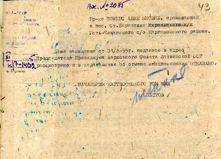 Atgriešanās Dzimtenē nebūt nebija tāda kā bijām iedomājušies. Cik daudz bija vilšanos un atteikumu. Atgriezties Rīgā, no kurienes mūs izveda, nemaz nevarēja būt doma. Arī laukos vecātēva mājā nelaida, jo to aizņēma citi. Apmešanās vietu atradām Līgatnē, kur abām ar māsu bija jāiet par slaucējām, tad varējām palikt. Līgatnē tika nodzīvoti 40 gadi, tas ir no 1959. gada līdz 1999. gadam. Tur pabeidzu varkarskolā pamatskolu, tajā pašā laika dēls un meita arī mācījās turpat. Bija labi jāmācās, jo bērni arī ieskatījās manos mājas darbos un vērtēja manas atzīmes. Vēl pietika uzņēmības iestāties un pabeigt lauksaimniecības neklātienes tehnikuma zootehniķu nodaļu. Kad Līgatnes sovhozs sadalījās un mēs palikām Fabriciusa vārdā nosauktā putnu fabrika, kas bija padota Maskavai, bieži deva ceļa zīmes ekskursijām. Man ceļot ārpus Krievijas vienmēr bija atteikums. Tāpat bija ar augstākiem apbalvojumiem, tos izsūtītajiem nevarot dot. Pēc tēva reabilitācijas saņemšanas, kur rakstīts, ka viņam nāves sods nošaujot izpildīts par pretvalstisku darbību. Tikai tagad sapratu, ka augstākās iestādēs visus šos gadus viņu sarakstos tiku uzskatīta kā noziedznieka, kuram nāves sods izpildīts 1942. gadā Soļikamskā, meita.