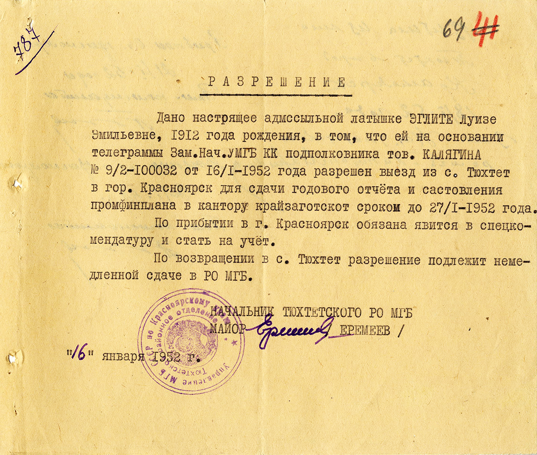 Andra Eglīša ģimeneEglītis (Eglīte) Andris Kārļa d., 1936, dzīvoja Cēsīs, Sarkanarmijas ielā 6. Izsūtīts 14.06.1941. uz Krasnojarskas novada Tjuhtetas rajonu. Atbrīvots 1946. g. un atgriezies Latvijā. 25.03.1949. kopā ar vecvecākiem izsūtīts atkārtoti uz Tomskas apgabala Koževņikovskas rajonu; vēlāk pārvietots uz Krasnojarskas novada Tjuhtetas rajonu. Atbrīvots 07.1957. LVA, 1987. f., 1. apr. (Cēsis), 17591. l.; LVA, 1894. f., 1. apr. (Cēsis), 12051. l. Tēvs Eglītis (Eglīte) Kārlis Pētera d., 1906, dzīvoja Cēsīs, Sarkanarmijas ielā 6. Arestēts 14.06.1941., ieslodzīts Sevurallagā. Miris ieslodzījumā 09.05.1943. vai 22.05.1943. LVA, 1986. f., 2. apr., P-9892. l.; LVA, 1987. f., 1. apr. (Cēsis), 17591. l. Māte Eglīte Luize Emīla m., 1912, dzīvoja Cēsīs, Sarkanarmijas ielā 6. Izsūtīta 14.06.1941. uz Krasnojarskas novada Tjuhtetas rajonu. Atbrīvota 16.08.1956. LVA, 1987. f., 1. apr. (Cēsis), 17591. l. Brālis Eglītis (Eglīte) Guntis Kārļa d., 1939, dzīvoja Cēsīs, Sarkanarmijas ielā 6. Izsūtīts 14.06.1941. uz Krasnojarskas novada Tjuhtetas rajonu. Atrīvots 1950. gados. LVA, 1987. f., 1. apr. (Cēsis), 17591. l. Brālis Eglītis (Eglīte) Kārlis Kārļa d., 1941, dzīvoja Cēsīs, Sarkanarmijas ielā 6. Izsūtīts 14.06.1941., miris ceļā. LVA, 1987. f., 1. apr. (Cēsis), 17591. l. |