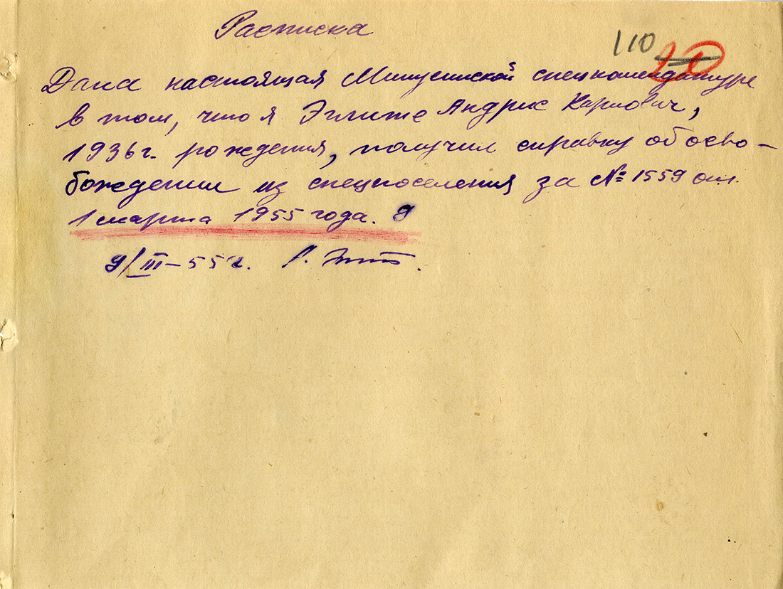 Publicēts: Atmiņas nākotnei: politiski represēto stāsti. (sast. A. Opoļska). [Cēsis], Latvijas Politiski represēto Cēsu biedrība, 2012., 22.-23. lp.