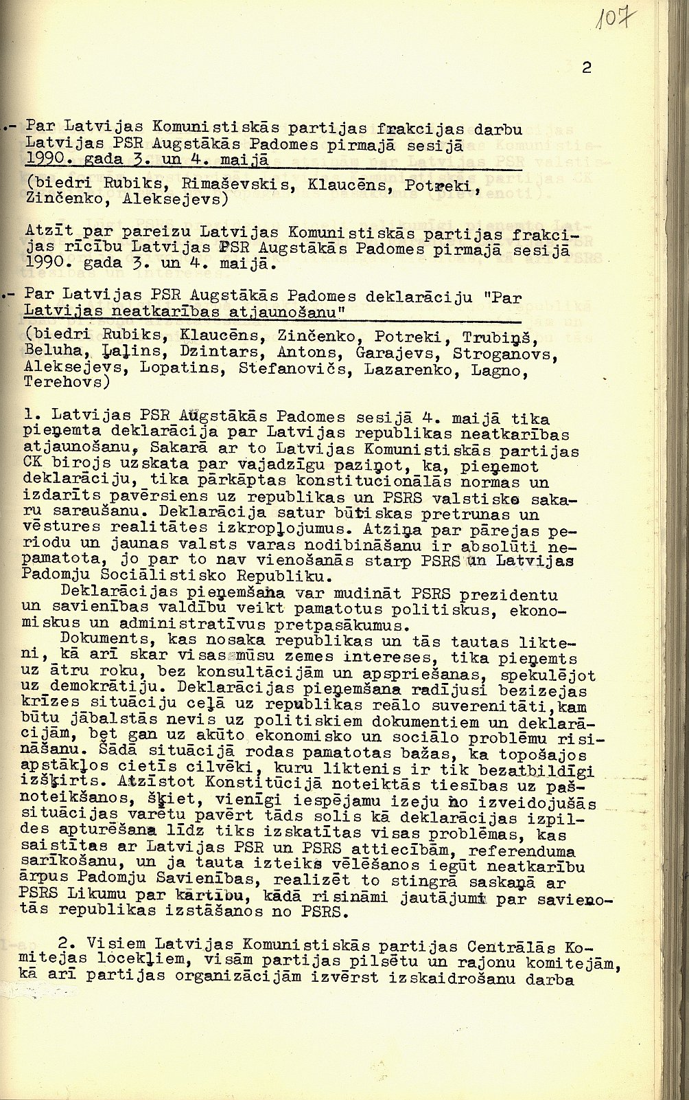 Latvijas Komunistiskās partijas Centrālās komitejas 1990. gada 4. maija biroja sēdes protokols Nr. 6 Par Latvijas PSR Augstākās Padomes deklarāciju Par Latvijas neatkarības atjaunošanu.