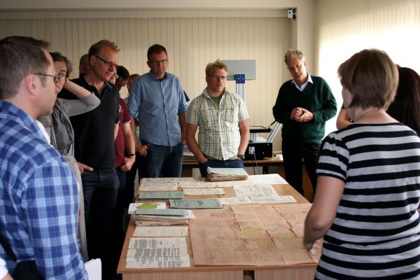 Pēc arhīva apmeklējuma viesi devās tālāk uz Saldu, lai redzētu bijušo Zvārdes poligona teritoriju, tālab arī piedāvājām apskatīt dokumentus un kartoshemas, kas saistītas ar zemes piešķiršanu poligonam 1950.gados.