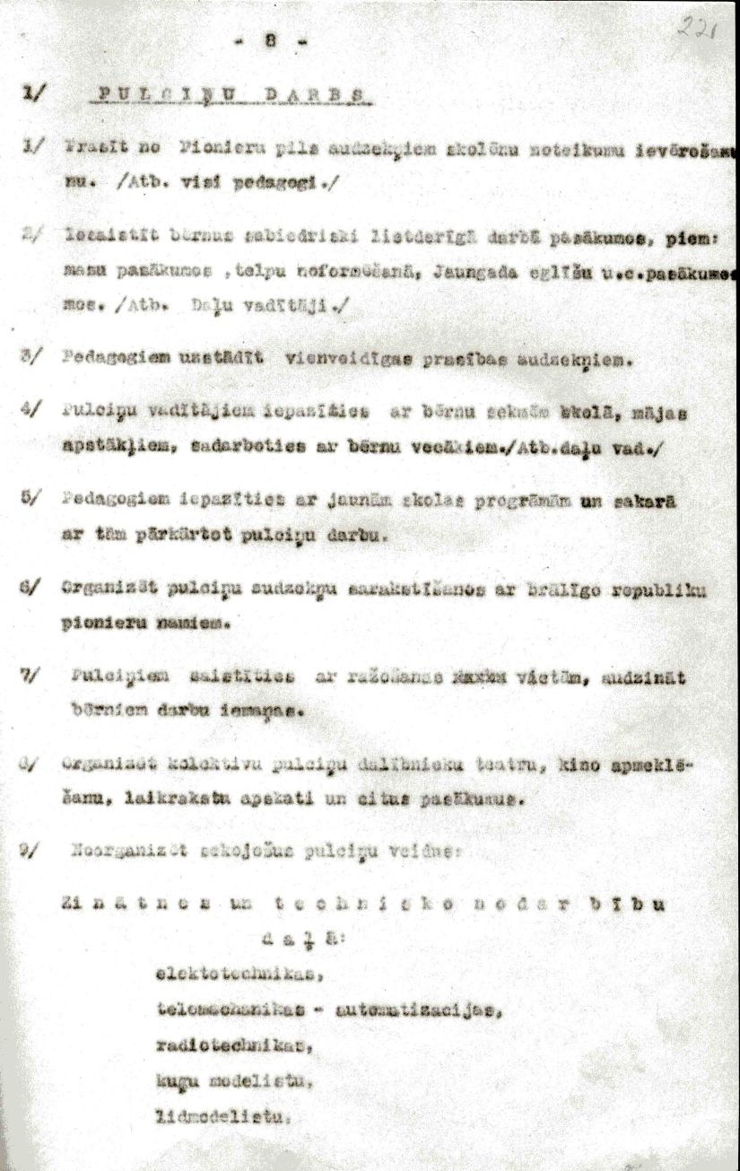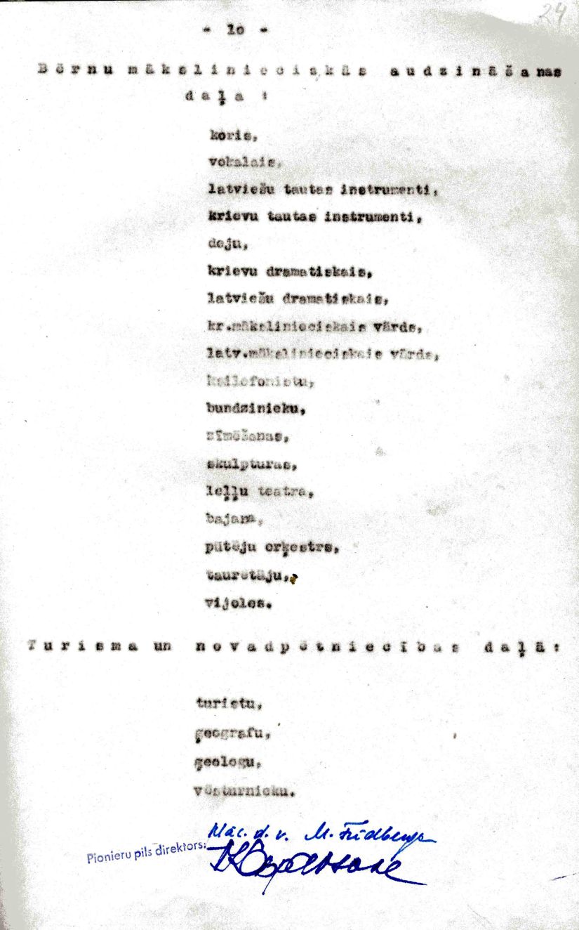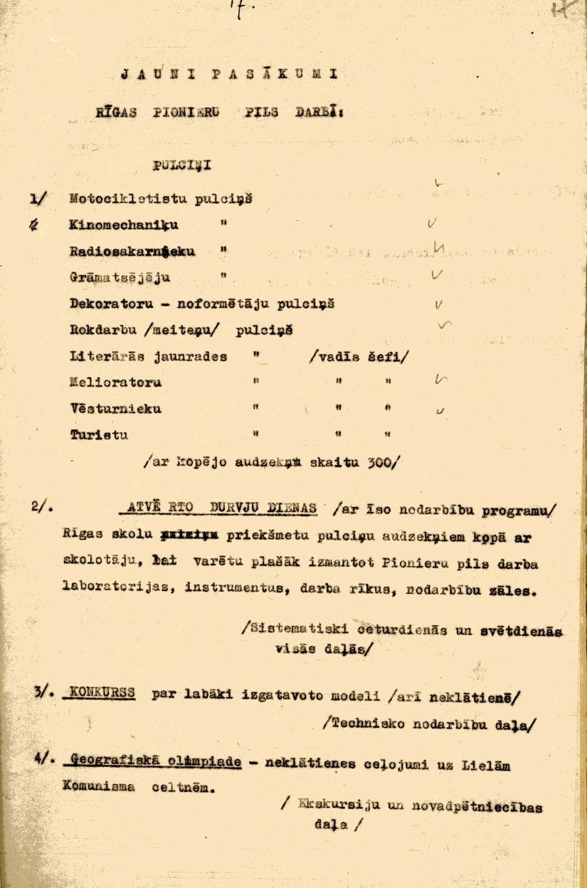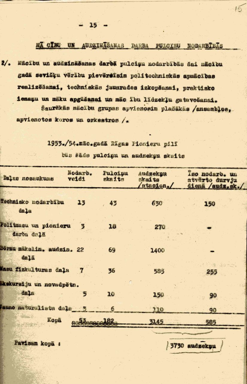 | Rīgas Pionieru pils darba plāns 1953./54. mācību gadam.