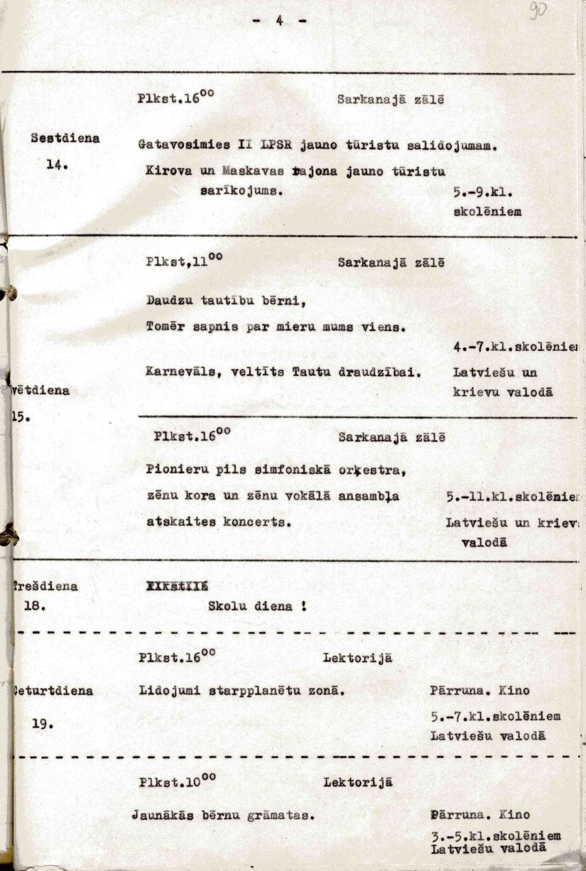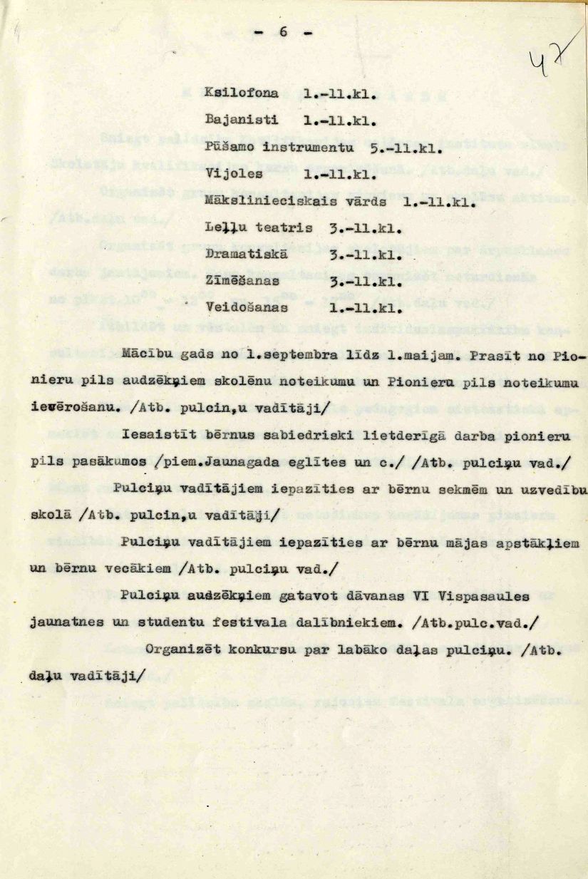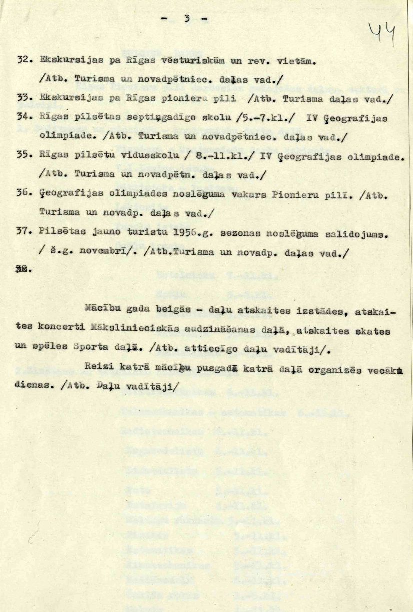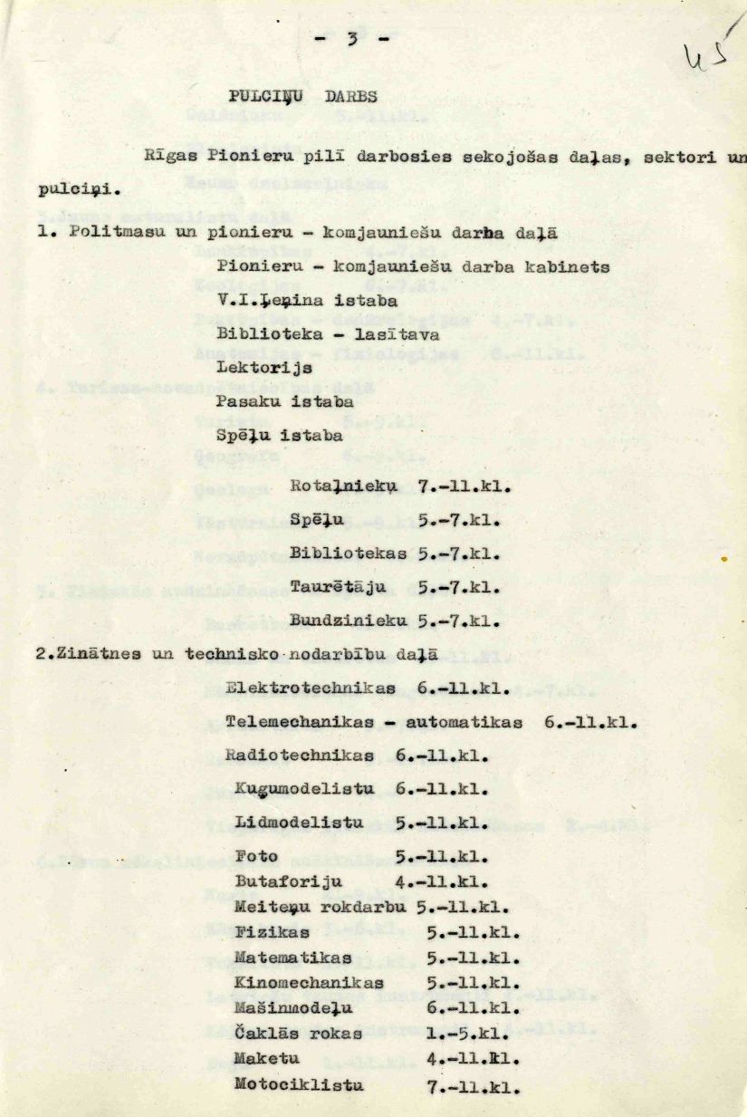 | Rīgas Pionieru pils darba plāns 1953./54. mācību gadam.