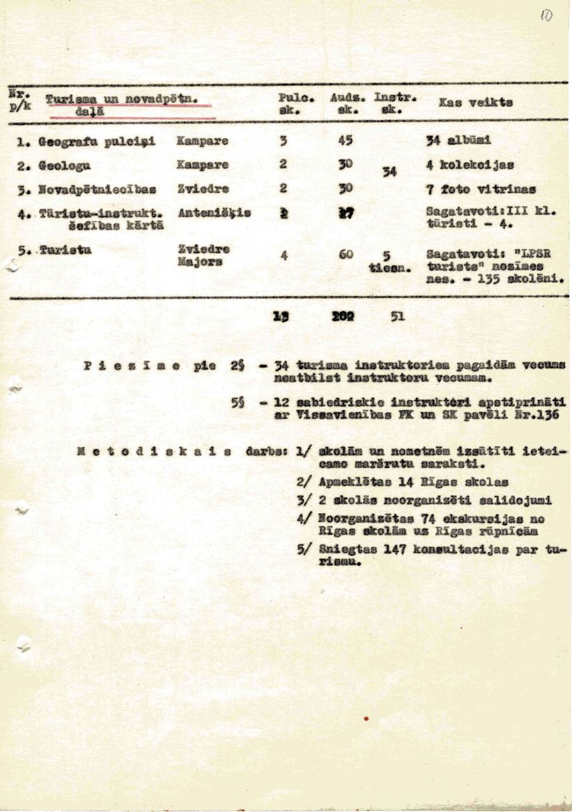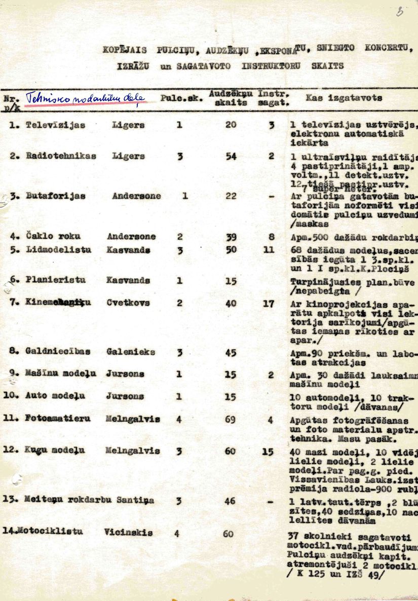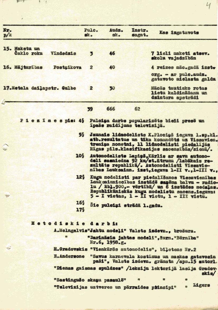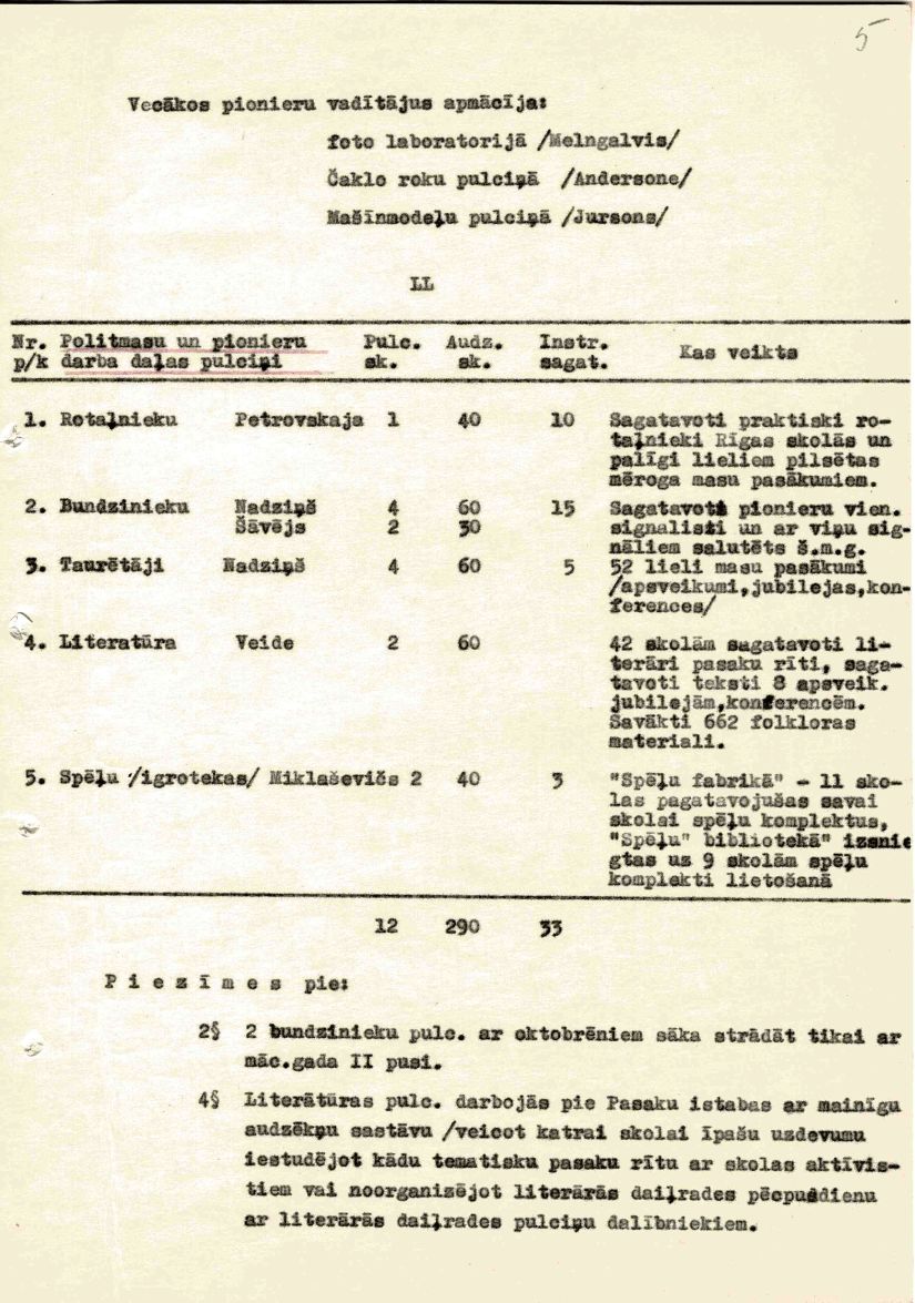 Rīgas Pionieru pils atskaite par mācību un audzināšanas darbu 1957./58. mācību gadam
