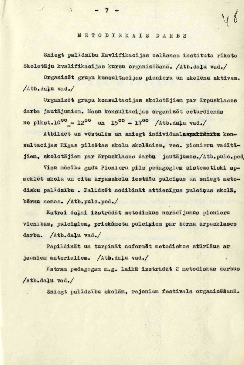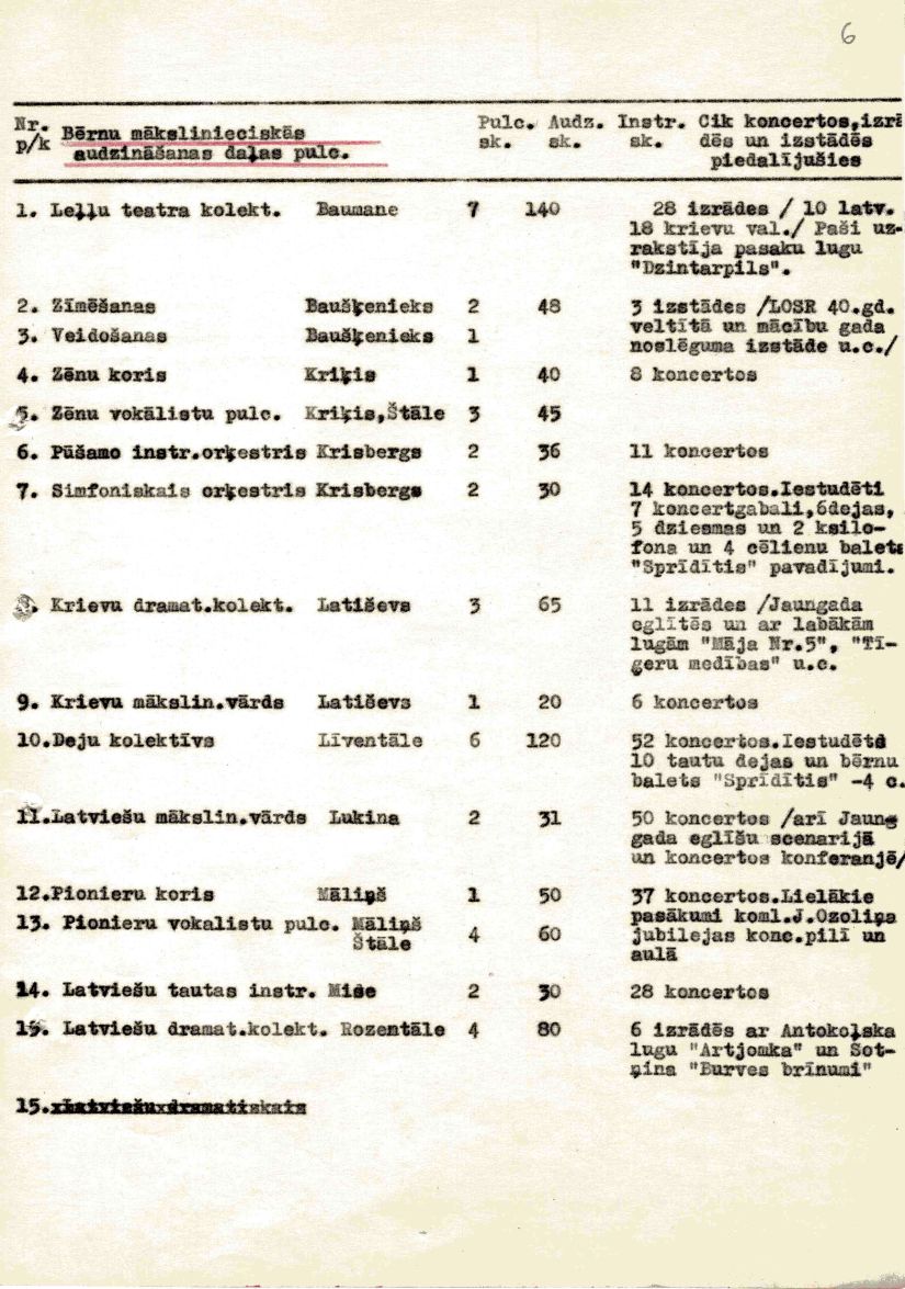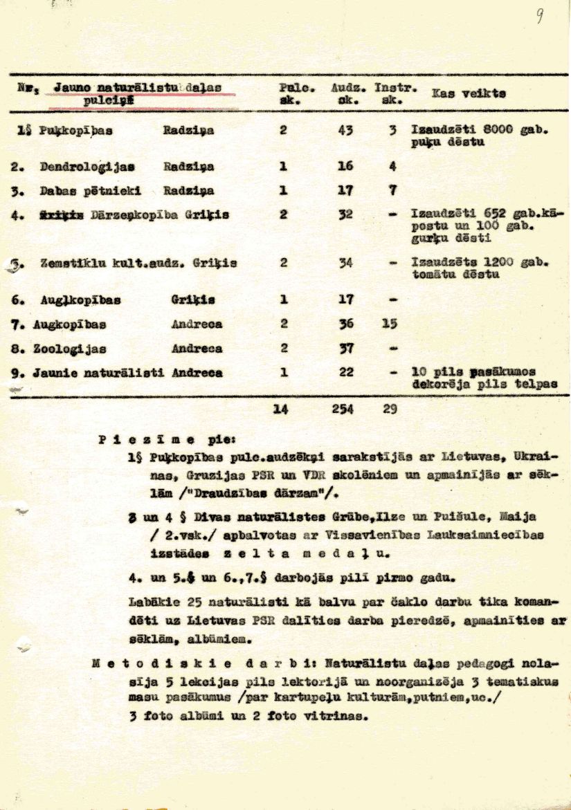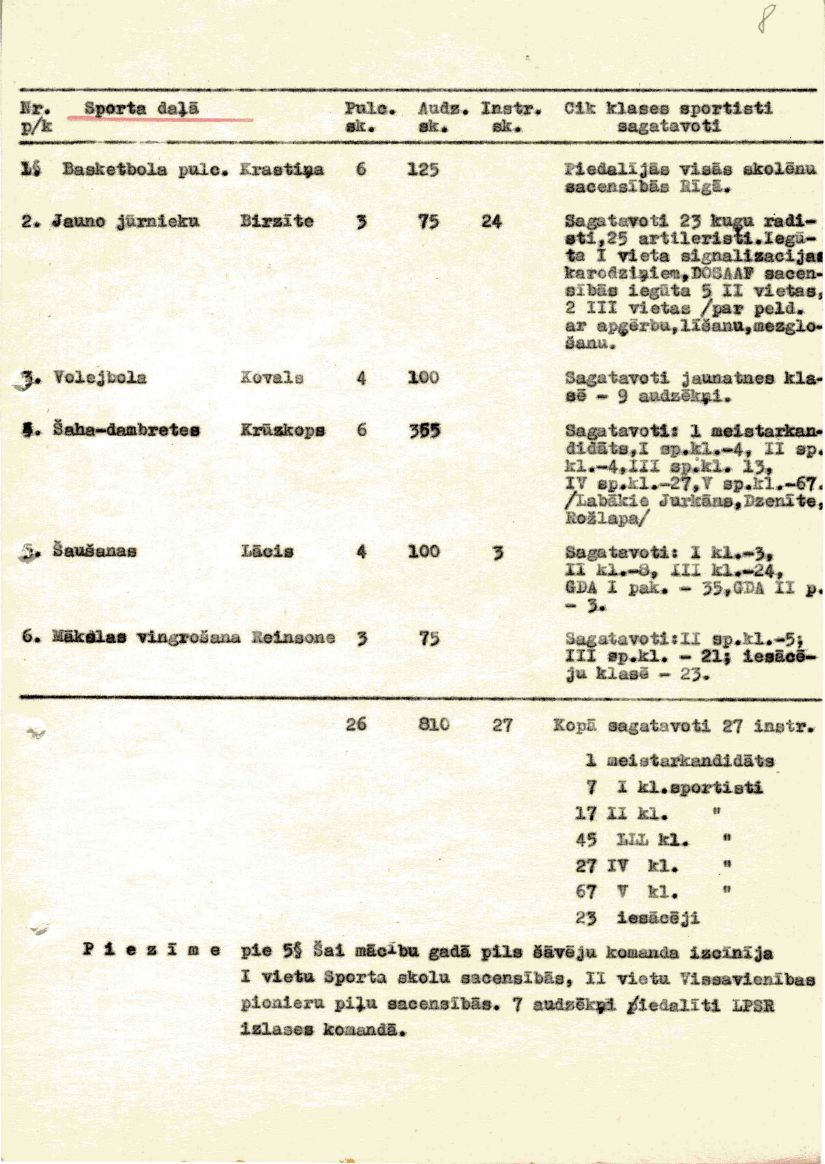 Rīgas Pionieru pils atskaite par mācību un audzināšanas darbu 1957./58. mācību gadam