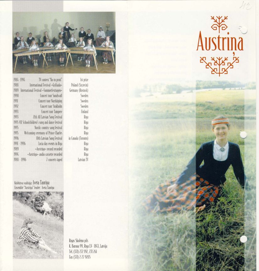 Rīgas Skolēnu pils koklētāju ansambļa "Austriņa" buklets.